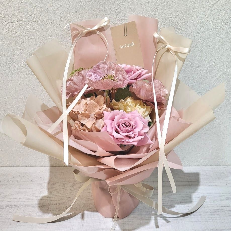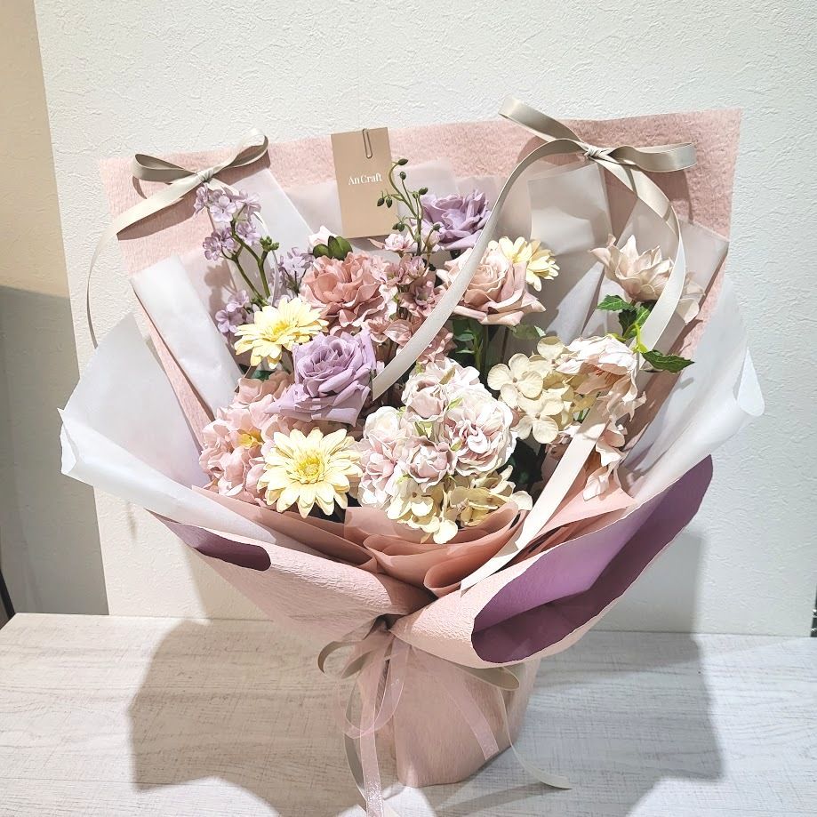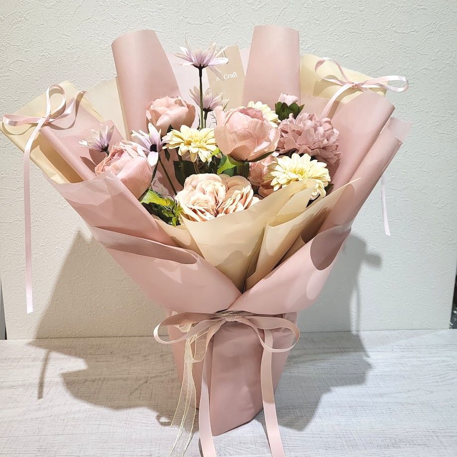 HOME | アルテブーケ アルテブーケは数量限定でご用意しています。ネット販売は3月1日より購入可能です。※税込表示 アルテブーケは、 心をつかむニュアンスカラーで束ねた花束です。やさしい色合いが空間を整え、そのまま立てて飾れるデザインに仕上げています。水替え不要で、長く楽しめます。 3,800円 アルテブーケ 日常にやさしく寄り添う花。 6,600円 アルテブーケ 気持ちを丁寧に届けるお花。 11,000円 アルテブーケ 特別な日のためのお花